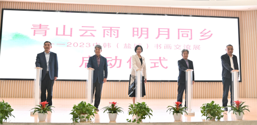 11月2日上午,由市外办、市文广旅局共同主办的“青山云雨 明月同乡——2023中韩(盐城)书画交流展”开幕式在盐城市美术馆举行。本次活动展览时间是11月2日—11月9日,共展出上百幅中韩书画艺术佳作。市外办主任周晓晴、市文广旅局副局长唐文健出席活动。