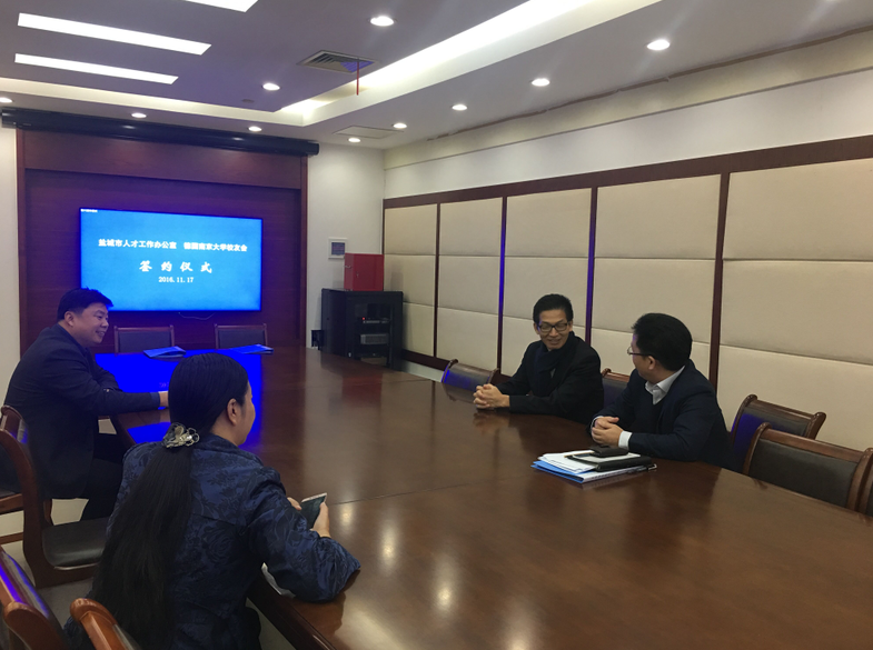 11月16日至18日,德国江苏同乡工商暨文教联合总会、德国南大校友会会长,盐城籍旅德侨胞王荣虎先生来盐,就在德国设立“华侨华人专业人士联络站”工作与市人才办进行了交流和磋商,双方签订了人才合作协议书。