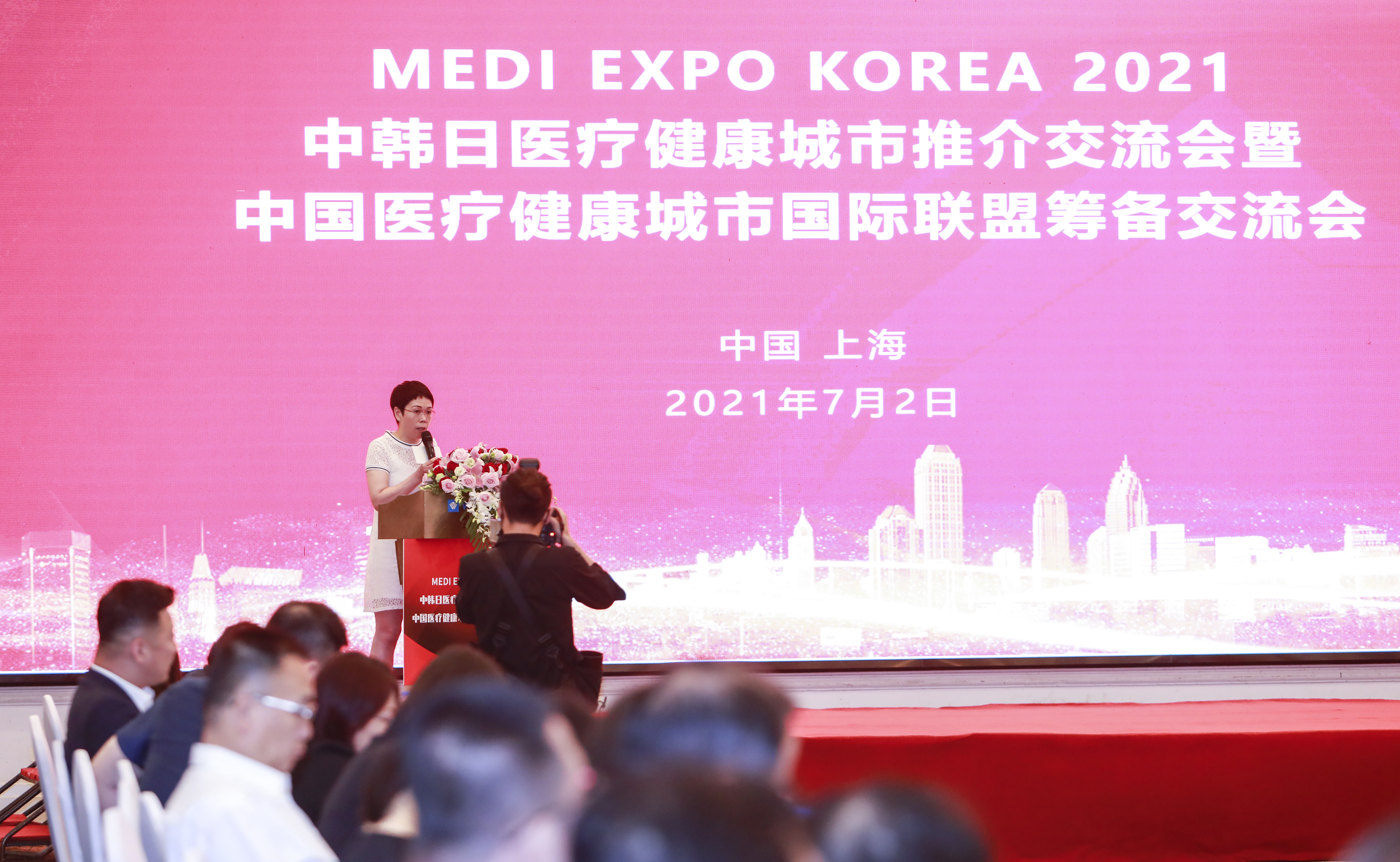 7月2日,应大邱广域市政府驻上海办事处邀请,我办副主任周晓晴率市外办、市卫健委相关人员赴上海出席由中国医疗健康城市国际联盟筹委会主办,韩国大邱广域市政府驻上海代表处协办的中韩日医疗健康城市推介交流会暨中国医疗健康城市国际联盟筹备交流会。