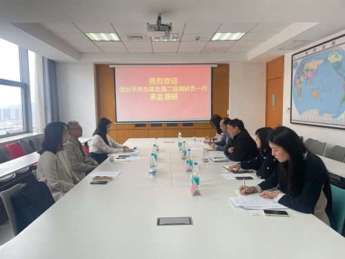 4月19日,烟台市外办二级调研员陈志强率队来盐调研,我办四级调研员刘国中陪同调研,并进行座谈交流。