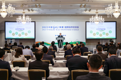 8月8日,我市在日本东京举行2023中国盐城(东京)经贸合作交流会。市委副书记、代市长张明康,中国驻日本大使馆经济商务公使宋耀明,日本国际贸易促进协会理事长笠井爚雄等出席活动并致辞。
