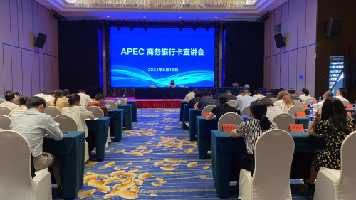 为持续加大APEC商务旅行卡宣传推介力度,全力做好外事系统“一县一策”工作,8月16日上午,市外办相关人员赴东台市举办APEC商务旅行卡专题推介会,东台市商务局,各乡镇、开发区、沿海经济区、高新区、西溪景区、黄海森林公园等19家单位以及21家企业43名代表参会。