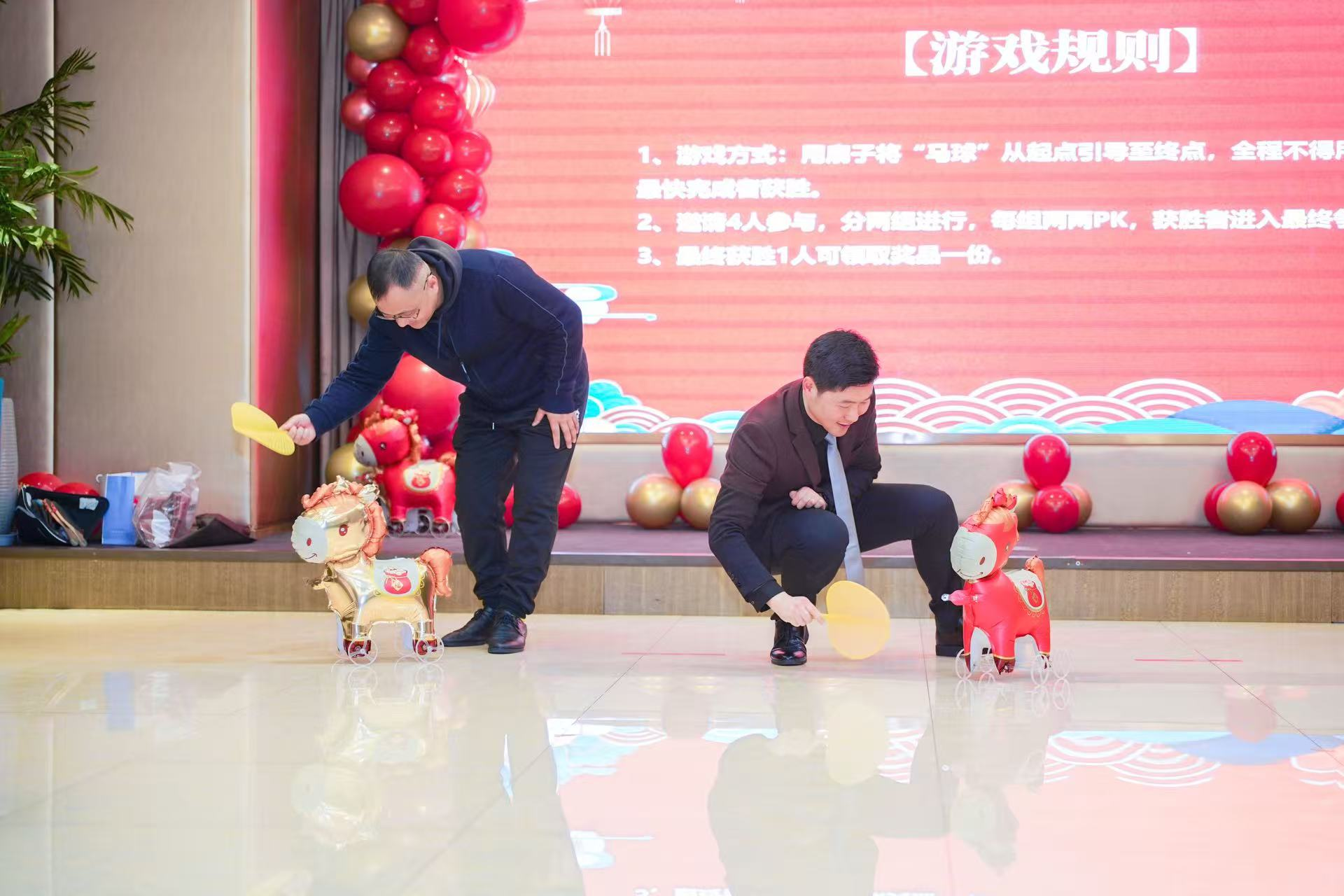 活动紧扣马年新春主题,精心设计“一马当先、龙马精神、马上通关、骏马运福、策马奔腾”系列协作竞技类趣味游戏,全办人员随机组队、分组比拼,在默契配合中闯关答题、协作竞技,现场欢声笑语此起彼伏、热闹非凡。大家在轻松欢乐的互动中舒缓了工作节奏、增进了彼此情谊,更彰显出锐意进取、奋勇争先、团结协作的优良作风。