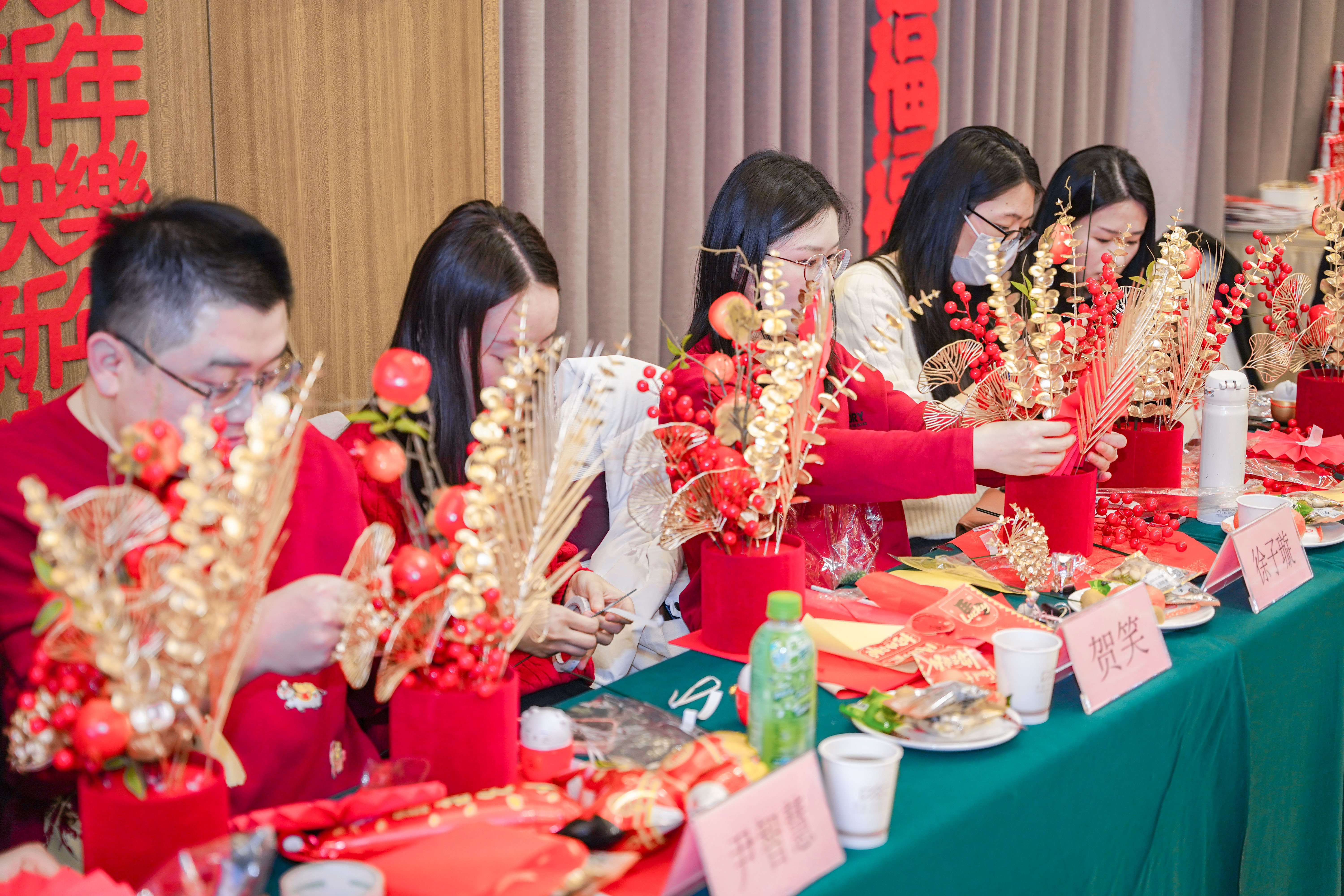 活动以迎春年宵花制作为暖心开篇,全办人员齐聚一堂,亲手选材、搭配造型,在一花一叶间感受传统年俗的独特魅力。大家将对新年的美好祝愿、对干事创业的奋进期许融入花艺作品中,让党建工作的“温度”与新春佳节的“年味”在活动现场交融汇聚,在动手实践中增进彼此交流。